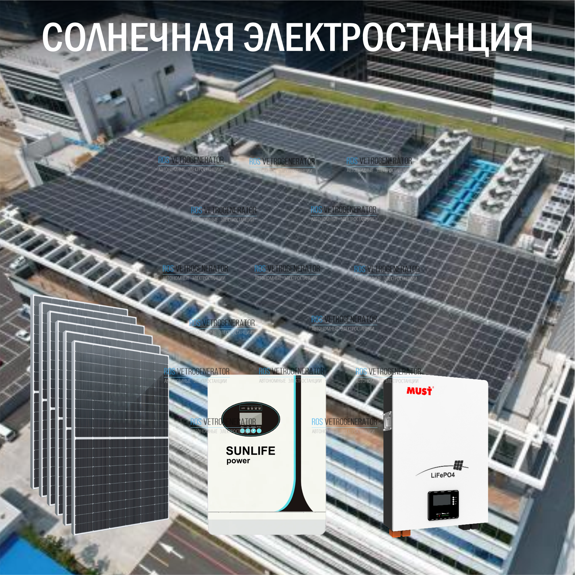 | Комплектация | Солнечные панели, гибридный инвертор, аккумулятор |